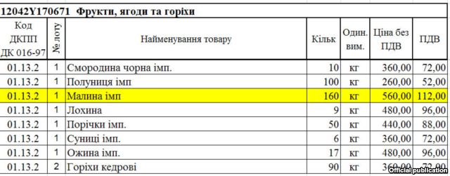 Напомним, ранее сегодня издание «Наші гроші» с ссылкой на «Вестник государственных закупок» сообщило о том, что «Гарант-сервис» заключил ряд соглашений на приобретение фруктов, ягод и овощей, на общую сумму свыше 2,5 млн гривен. Согласно информации «Вестника государственных закупок», черешня приобретена по 63 гривни за килограмм, клубника – по 66 гривен. При этом импортная черешня, как пишет издание, приобретена по 204 гривни за килограмм, импортная клубника по 312 гривен за килограмм. Дороже всего в перечне заказанной продукции стоит импортная малина – 672 гривни за килограмм.
