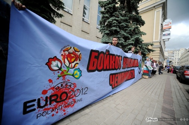 8 июня два десятка российских защитников животных пришли к посольству Украины в России с требованием прекратить геноцид собак. Активисты также призвали бойкотировать футбольный турнир Евро-2012, который должен стартовать сегодня в Польше.