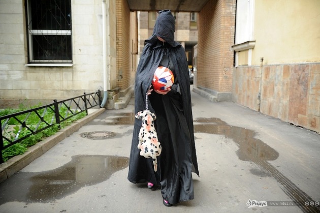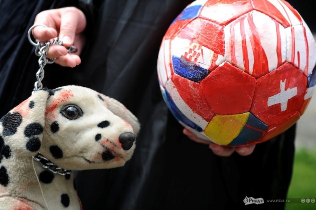 Одна из пикетчиков была в костюме Смерти. Она держала в руках футбольный мяч, каждая клетка которого была окрашена в цвета флагов тех стран, которые присоединились к международной кампании протестов против «Евро-2012». Этот «кровавый мяч» зоозащитники планируют передать Президенту Украины Виктору Януковичу вместе с требованием прекратить убивать бездомных животных.