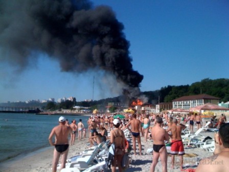 На пляже в Одессе выгорело кафе (фото)