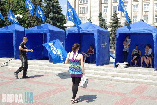 На Соборной площади Черкасс в воскресенье появилось 15 палаток Партии регионов.