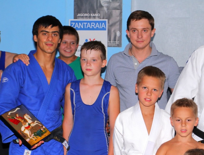 Вместе с юными дзюдоистами Георгий Зантарая отрабатывал броски и спарринговал с каждым желающим. По окончанию тренировки соучредитель «Школы борьбы» Олесь Довгий вместе с борцами подарили одному из самых перспективных украинских олимпийцев икону Георгия Победоносца.