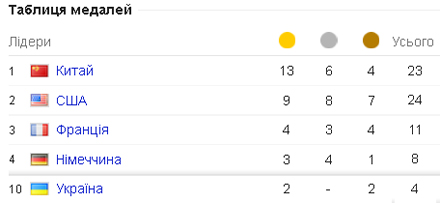 Украина поднялась с 17-го на 10-е место в общекомандном зачете на Олимпиаде в Лондоне после выигрыша второй золотой медали. Об этом свидетельствует таблица медалей стран, размещенная на сайте Чемпионат.ру.
