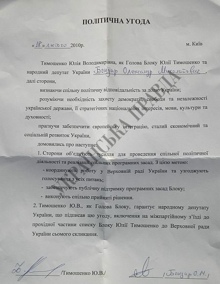 Он рассказал, что еще в феврале 2010 года между ним и Тимошенко было подписано такое соглашение, но в список он не попал.