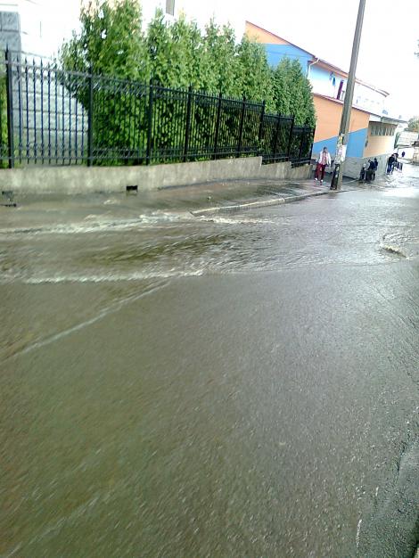 Переулок превратился в быструю реку, по которой с трудом проезжают машины, людям же остались два подтопленных тротуара по краям «реки». Некоторые из пешеходов оказались в водяной ловушке возле затопленного входа на стадион «Локомотив».