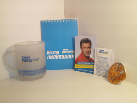 Чтобы отойти от обыденного стереотипа подкупа избирателя гречкой, Пилипишин решил раздавать киевлянам Шевченковского района чай в пакетах с надписью «Кияни передусім!». К чаю прилагалась именная чашка Пилипишина и 20 грамм меда.