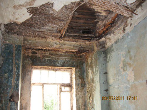 В одной из комнат последнего (пятого) этажа усадьбы Мурашко на Малой Житомирской в Киеве провалился потолок с лепниной. Причиной разрушения послужила дыра в крыше, через которую дождевая вода попадала непосредственно на межкровельное перекрытие, которое прогнило. Об этом на своей странице в Facebook сообщил глава комиссии Киевсовета по вопросам культуры и туризма Александр Бригинец.