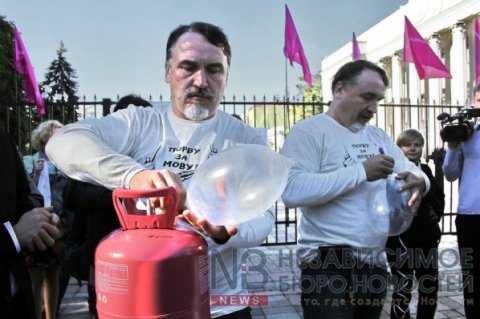 В небо над Радой запустили презервативы с именами нардепов (фото)