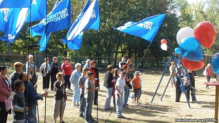 В Луганске во время открытия детской площадки дети держали флаги с символикой Партии регионов. Об этом сообщили в пресс-службе Луганского областного избирательного штаба объединенной оппозиции «Батькивщина», передает «Радио «Свобода».