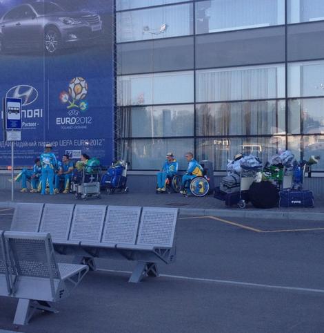 В интернете появилась фотография, иллюстрирующая то, как украинские паралимпийцы добирались домой со аэропорта Борисполь.