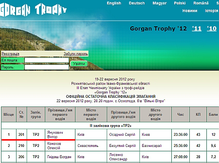 Сын Президента Виктор Янукович-младший любит «месить грязь» на больших машинах. На днях он принял участие в третьем этапе Чемпионата Украины по трофи-рейду «Gorgan Trophy '12», который состоялся с 19 по 21 сентября в Ивано-Франковской области.