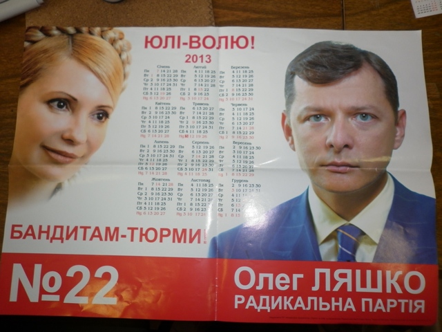 Наблюдатель ОПОРЫ несколько недель тому назад зафиксировал информационную листовку с изображением Юлии Тимошенко и Олега Ляшко.