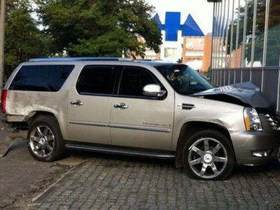 На проспекте Гагарина водитель автомобиля Cadillac Escalade, выехал на тротуар, по дороге снеся светофор, и врезался в здание, в котором расположен офис оппозиционной партии.