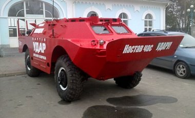 В Борисполе (избирательный округ 98) агитаторы партии УДАР используют «тяжелые аргументы»: по городу стал ездить БТР, раскрашенный в красный цвет с партийной символикой. Об этом сообщают активисты гражданской сети ОПОРА.