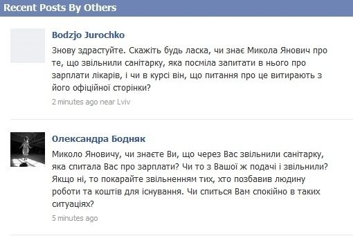 Аналогичная ситуация повторилась с комментариями, которые запостилы на странице Азарова журналисты iPress.ua - все пять вопросов журналистов издания были немедленно удалены.