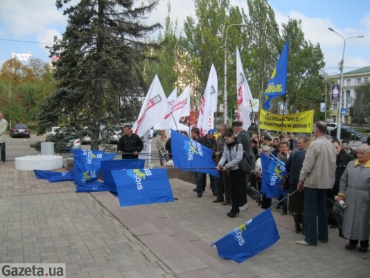 Сегодня, 20 октября, в Донецке прошел митинг обиженных на власть фермеров Марьинского и Великоновоселковского районов области под флагами оппозиции. Во время акции протеста звучали антиправительственные лозунги, а завершился митинг своеобразным маршем презрения.