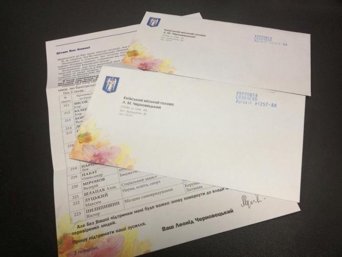 Киевляне получили письма якобы от Черновецкого с просьбой поддержать нужных кандидатов (ФОТО)