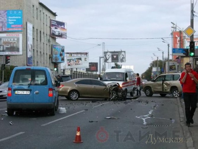Авария при участии пяти автомобилей произошла на улице Среднефонтанской около пяти вечера в среду.