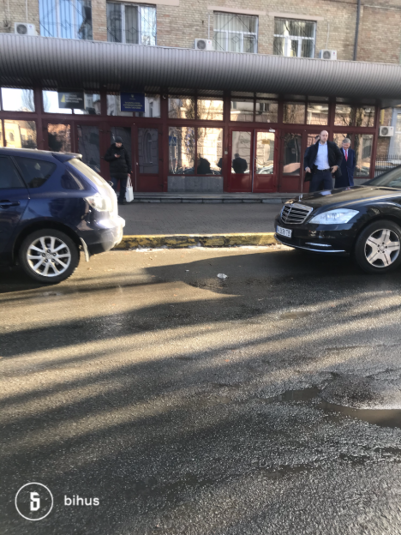 На фото, яке опублікував Bihus.Info видно як олігарх виходить з НАБУ і в супроводі охоронців сідає в чорний Мерседес.