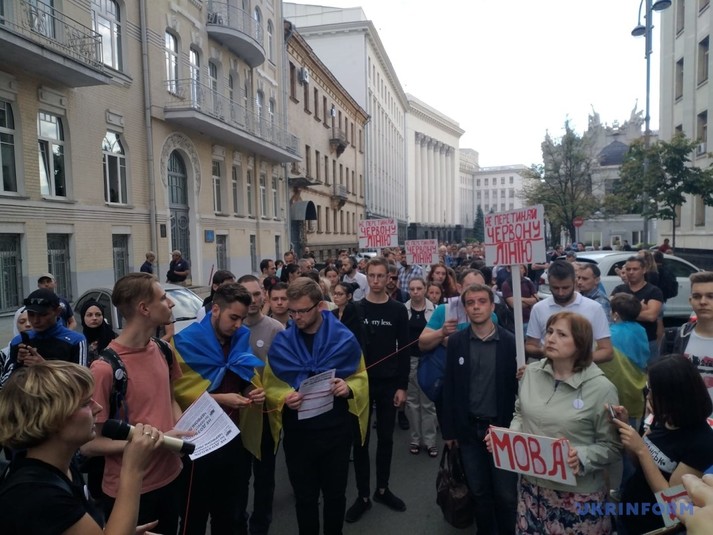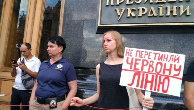 Під Офісом президента на вул. Банковій у Києві в четвер, 4 липня, громадські активісти озвучили главі держави Володимиру Зеленському «червоні лінії» і закликали владу не переступати їх.