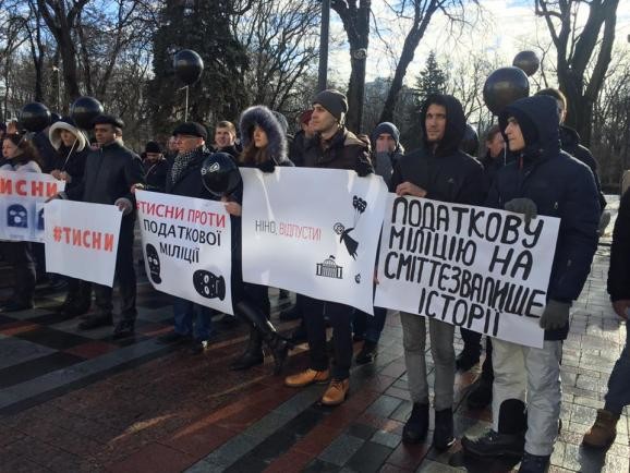 Під стінами Верховної Ради триває пікет проти законопроекту №0940, який може повернути податкову міліцію.