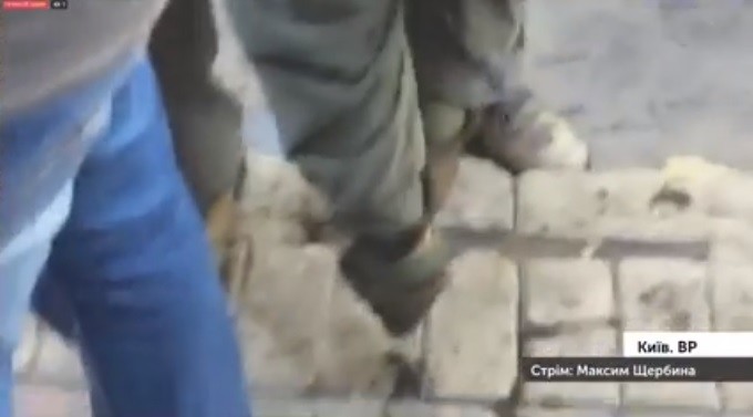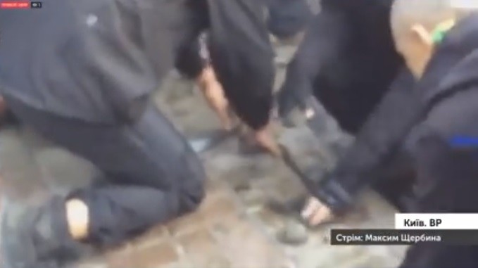 Також МВС обнародувало відео, як мітингувальники забивають ногами поліцейського. Постраждалий 27-річний поліцейський Ігор Яценко - ветеран АТО.