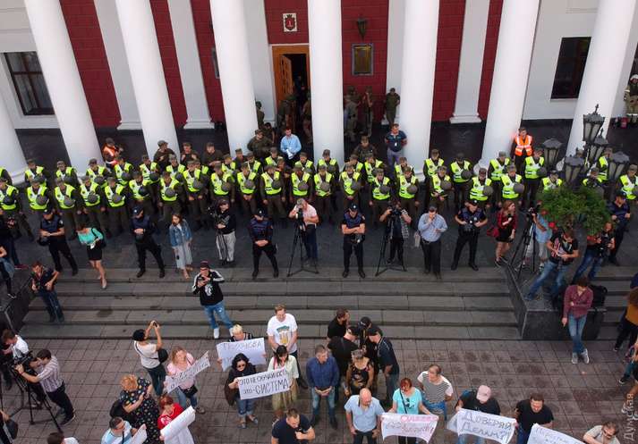 Навколо будівлі мерії сконцентрована велика кількість співробітників поліції і Нацгвардії. Прохід з боку Дюка по Приморському бульвару перекритий.