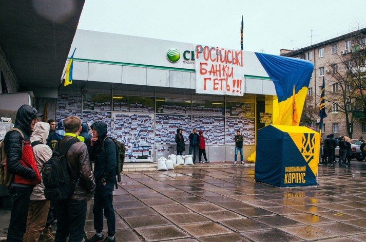 Раніше «Національний корпус» попереджав, що має намір самостійно припинити діяльність російських банків в Україні після 10 квітня і закликає громадян України, які є вкладниками цих банків, терміново забрати звідти свої гроші.