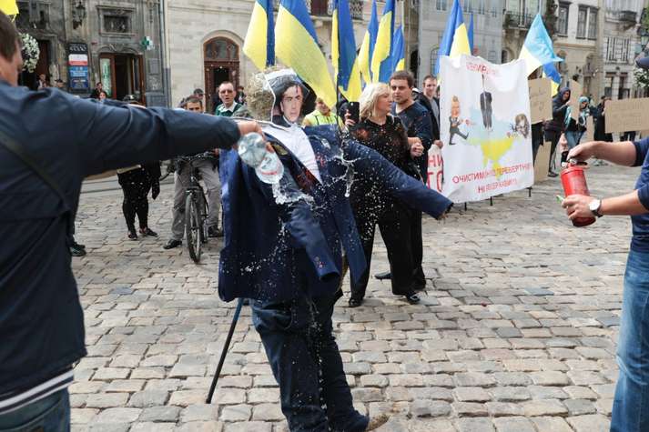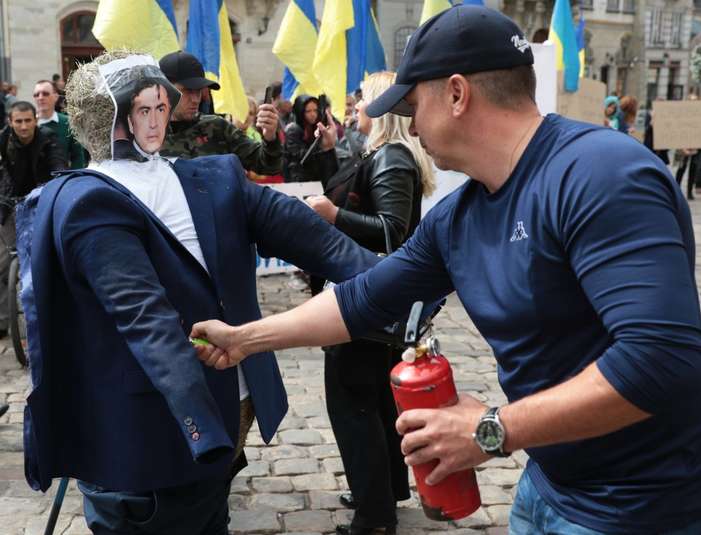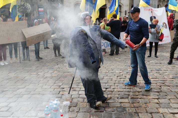 Активісти у Львові підпалили опудало Саакашвілі