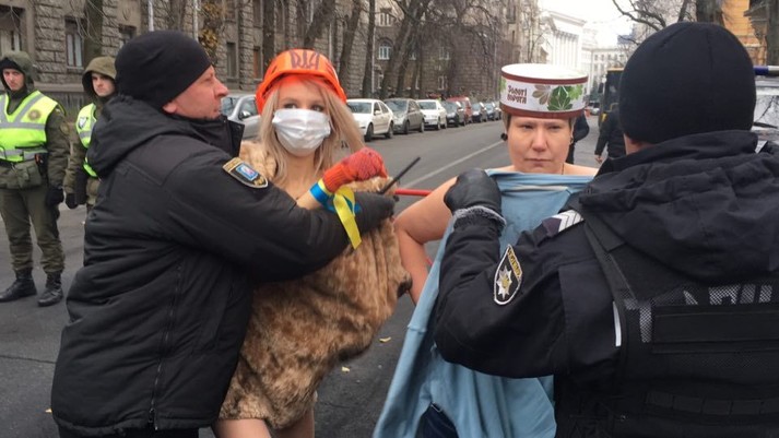 Акція тривала не більше хвилини, дівчат дуже швидко затримали й прикрили наготу.