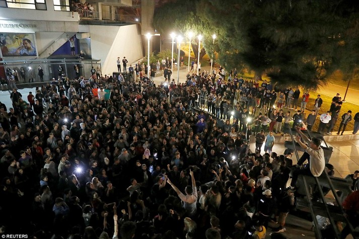 Відомо, що у Сан-Франциско на вулиці вийшли студенти. Вони кричать: «Не мій президент!» та «Ні справедливості, ні миру!».