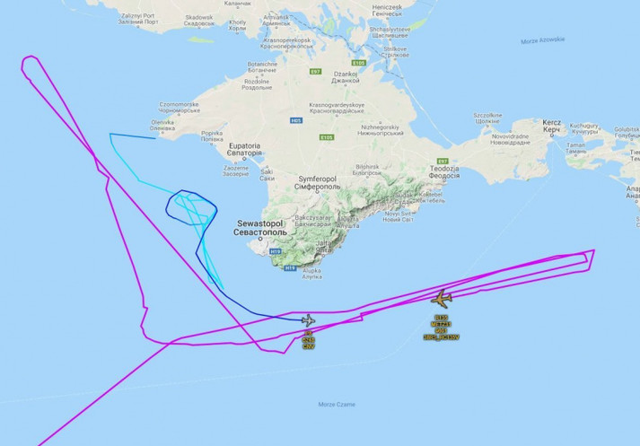 Біля узбережжя окупованого Росією Криму сьогодні літали відразу два літаки літак - розвідник ВВС США Boeing RC-135V і протичовновий ВМФ США Boeing P-8A Poseidon.