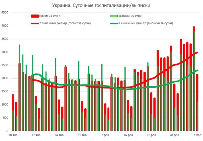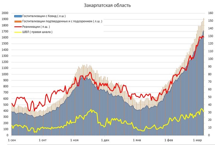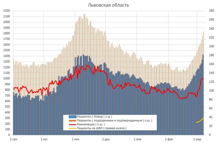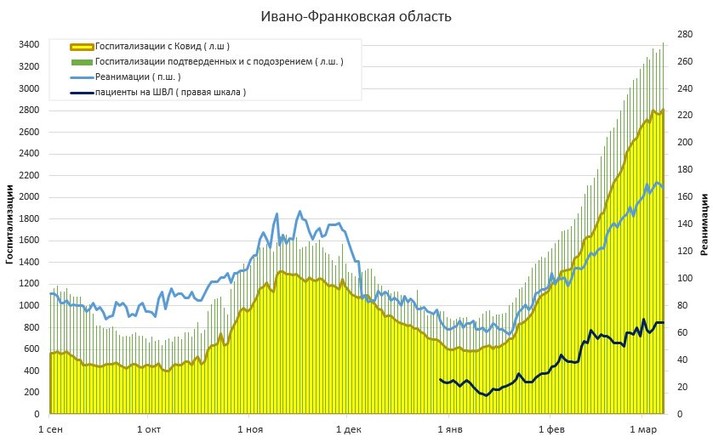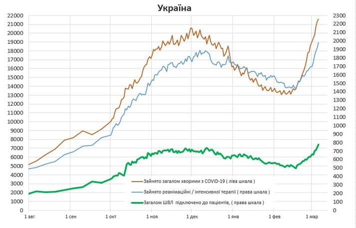 Раніше повідомлялося, що 4 березня в Україні встановлено ковiдний рекорд: кiлькicть шпиталiзованих перевищила осiннiй максимум.