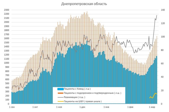 - Дніпропетровська область +80 ліжок за день.