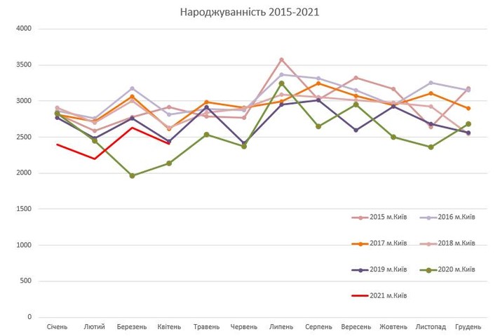 «В цілому по Україні порівняно з 2015 роком, народжуваність упала на 34% за перші чотири місяці року. Причому падіння триває вже шостий рік поспіль», – написав аналітик.