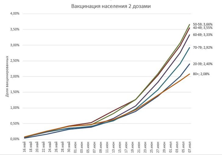 За словами Істребіна, частка вакцинованих людей старше 60 років мізерно мала. В умовах мінімального залишку часу до початку чергової хвилі, всі зусилля треба спрямувати на захист найбільш уразливих груп населення (60+ років, люди з хронічними захворюваннями, маломобільні групи).