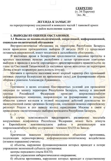Одним з доказів підготовки РФ до військової агресії проти сусідньої держави є «Легенда к замыслу на перегруппировку соединений и воинских частей 1 танковой армии в район выполнения задачи».