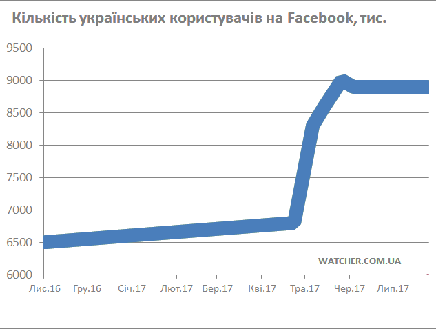 Рекорд за кількістю українських користувачів Facebook був зафіксований 19 червня, цього дня показник сягнув 9 млн.