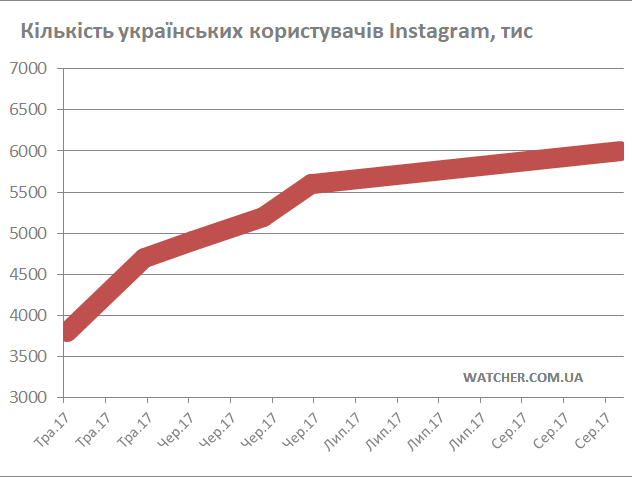 При цьому аудиторія Instagram за останні півтора місяці зросла на 400 тисяч і становить зараз 6 мільйонів користувачів.
