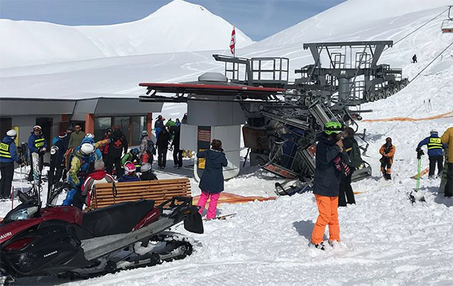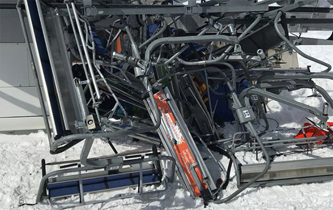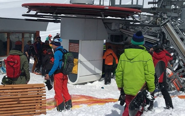 На відео, яке раніше поширили телеканали, видно, що відбувалося на місці після відключення електроенергії: крісла скочувалися канатною дорогою і врізалися один в одного, унаслідок чого люди з падали з висоти на сніг.