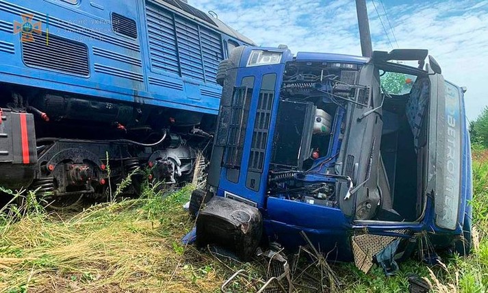 Нагадаємо, сьогодні вантажівка виїхала на переїзд, незважаючи на сигналізацію, в результаті чого поїзд зніс її та протягнув кілька метрів. Локомотив зійшов з рейок.