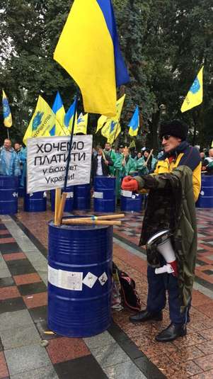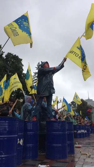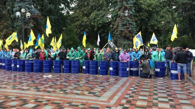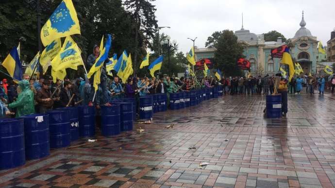 Акція доволі добре організована. Її учасники розмахують прапорами і грюкають по бочках.