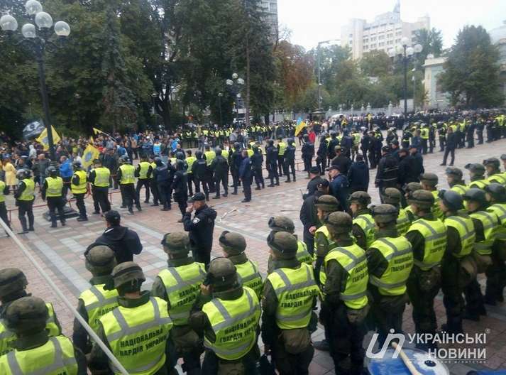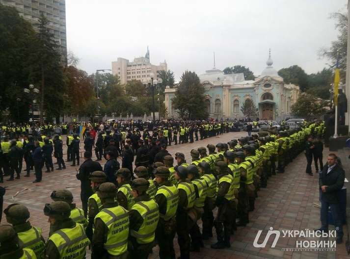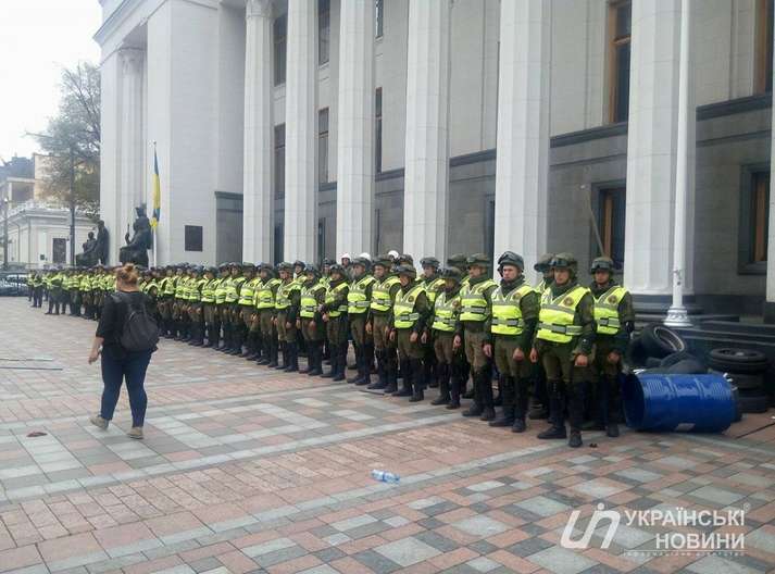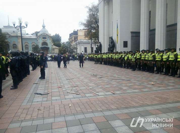 До цього з площі Конституції правоохоронці прибрали бочки і шини і відтіснили мітингувальників від будівлі парламенту.