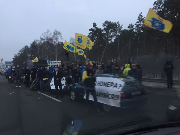 Автовласники з іноземними номерами блокують в’їзди до Києва та палять покришки
