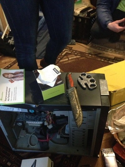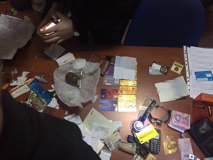 Правоохоронці провели вісімнадцять обшуків за місцями проживання та можливого перебування зловмисників у Києві, Яготині та Василькові, і вилучили тридцять банківських карток, на які потерпілі переказували гроші, а також кастети, ножі, боєприпаси, психотропні речовини.