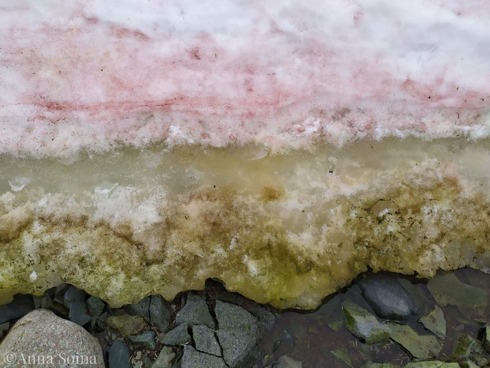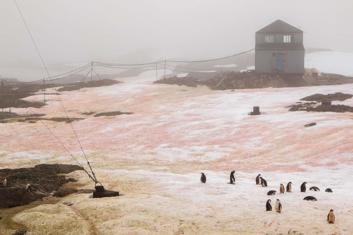 За кольоровим снігом біля станції можна спостерігати наприкінці антарктичного літа