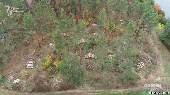 На території державного лісу в Хотянівці під Києвом біля одного з маєтків, які пов’язують з екс-міністром екології часів президентства Віктора Януковича Миколою Злочевським, вирубують дерева. Це зафіксували журналісти програми «Схеми» (спільний проект Радіо Свобода і телеканалу UA:Перший).