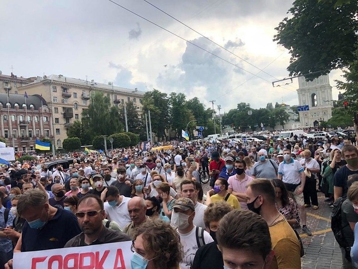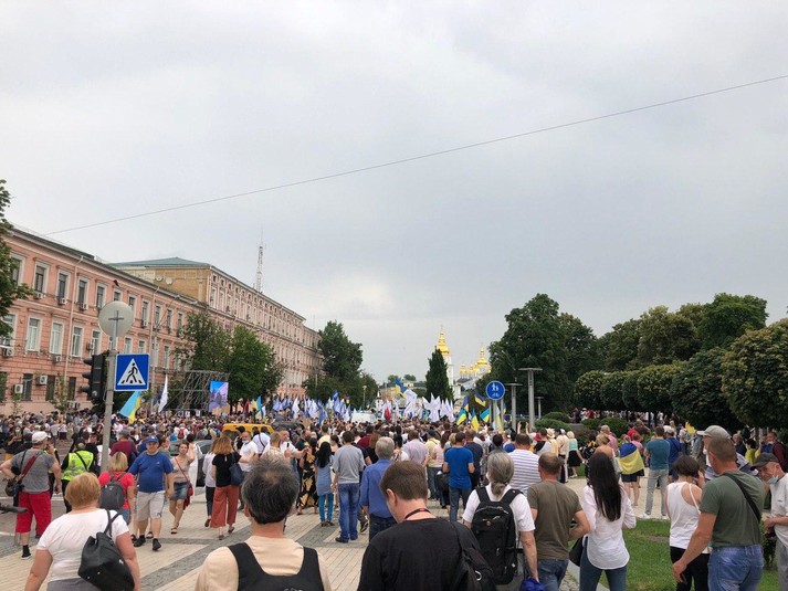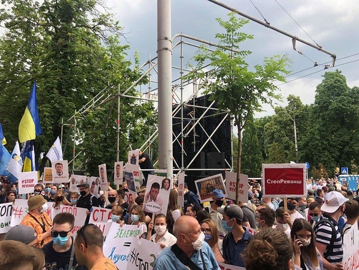 Кілька тисяч людей , як пишуть очевидці, до п'яти тисяч людей, зібралися під судом. Вони тримають державні прапори України, плакати «Стопреванш», «Зеленський = Янукович» та інші. На їхню думку, суд над п'ятим президентом – є політичним переслідуванням і реваншем проросійських сил в Україні, а також помстою усім майданівцям з боку поплічників Януковича.
