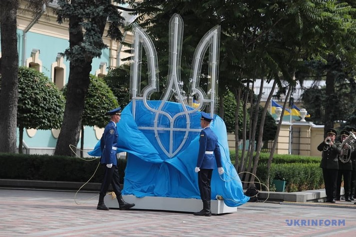 На площі Конституції біля будівлі Верховної Ради України встановлено пам'ятний знак «Тризуб».