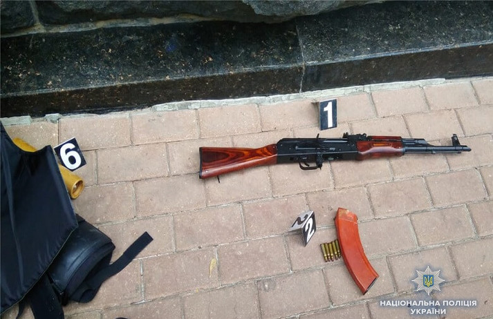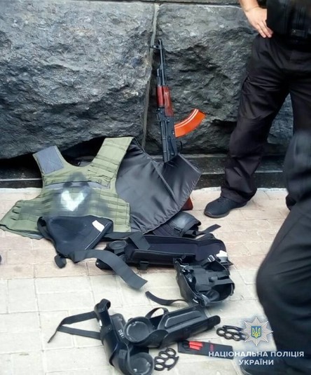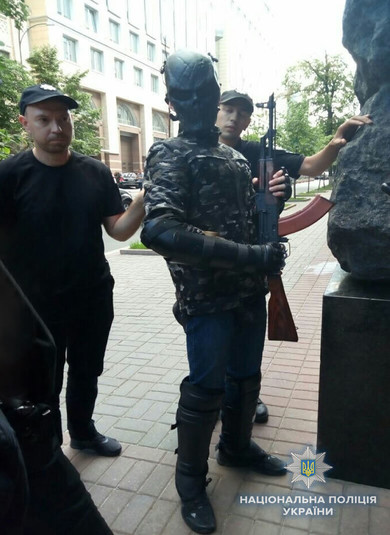 У Києві у вівторок, 19 червня, затримали молодого чоловіка, який в амуніції та масці на обличчі вийшов із таксі поблизу Кабміну і рухався у напрямку Верховної Ради, де відбувалася масова акція.